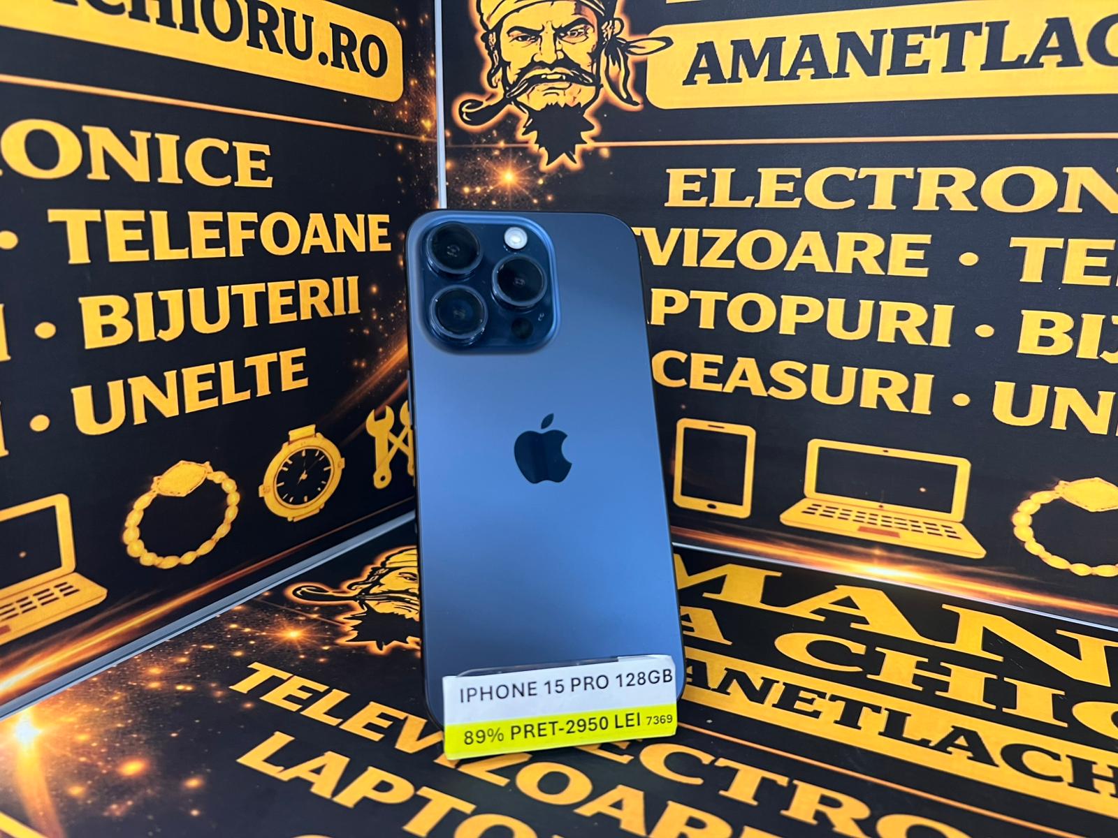 Telefon [Iphone 15 PRO], capacitate [128GB], stare [Utilizat / Foarte bună] Baterie 89%.
